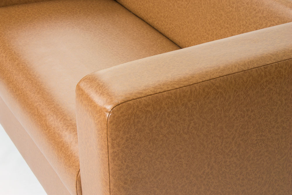 Материал обивки дивана Алекто и ее цвет выбирает заказчик. Наиболее уместна в данном случае обивка из искусственной кожи или кожзаменителя. Она прочна, долговечна, вынослива, неприхотлива в уходе, имеет вполне бюджетную цену и обладает большой палитрой оттенков.