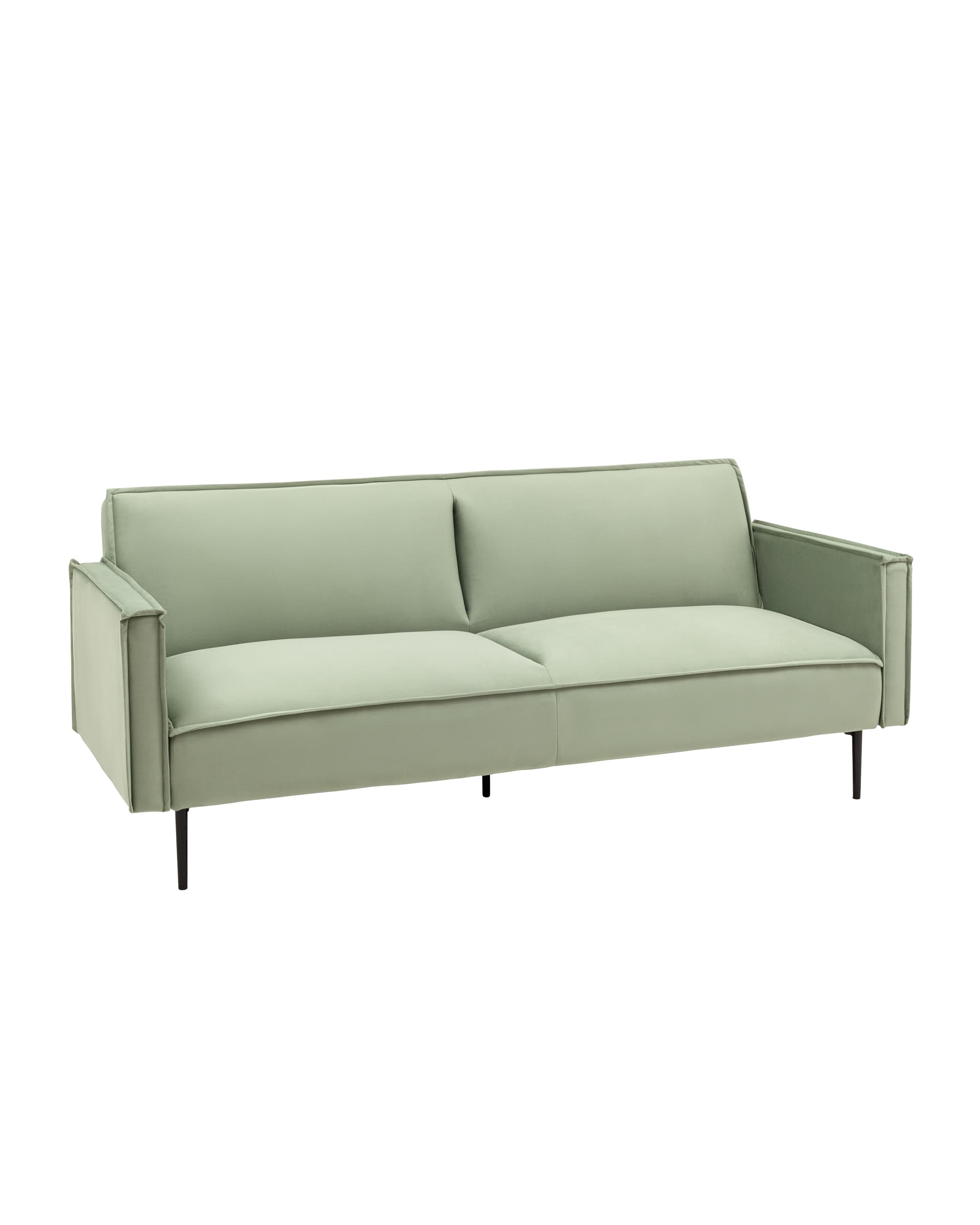 Диван прямой с подлокотниками Кассель велюр светло-салатовый раскладной ножки венге металл