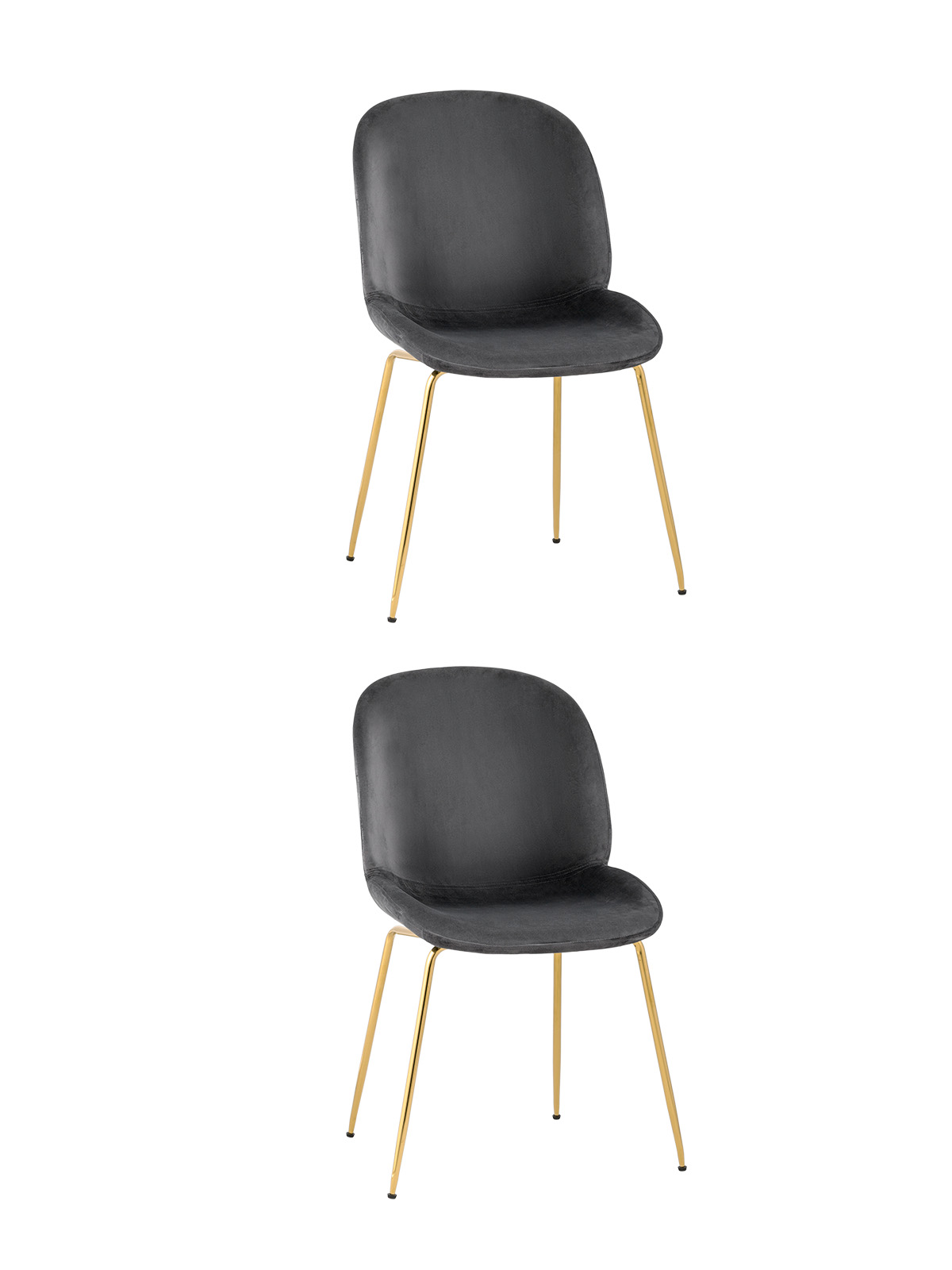 Комплект из двух стульев Beetle серый, металлический каркас, бархатная обивка, золотые ножки 2 шт