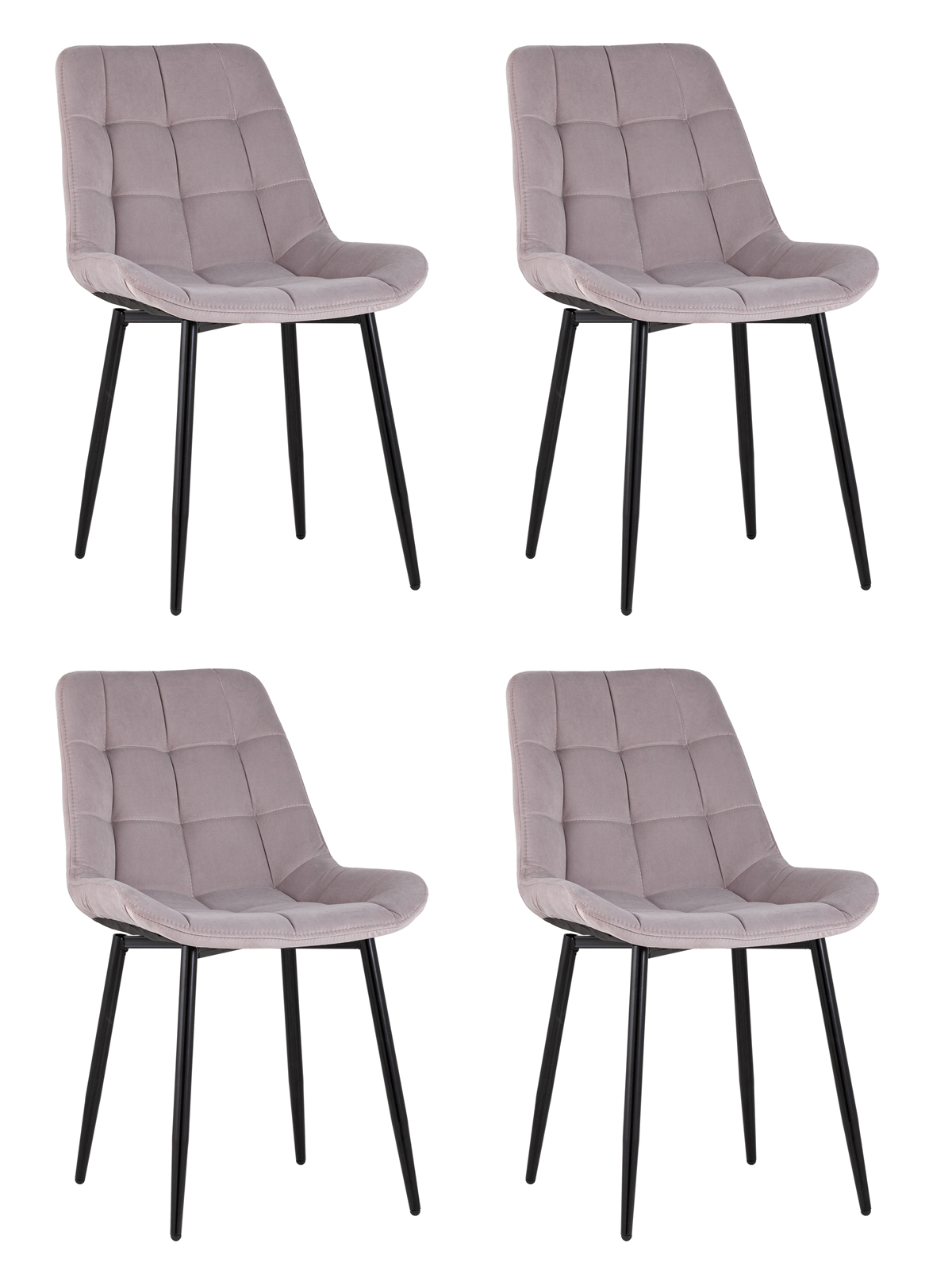 Комплект из четырех стульев Флекс велюр светло-сиреневый ножки из металла черные