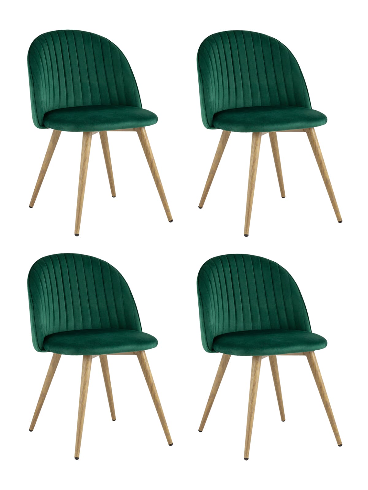 Комплект из четырех стульев Лион Страйпс зеленый обивка из велюра спинка с вертикальной прострочкой металлический каркас с принтом под натуральное дерево