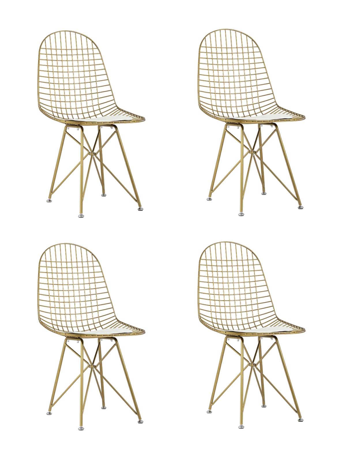 Комплект из четырех стульев Eiffel из металла цвет золото с белой подушкой из экокожи