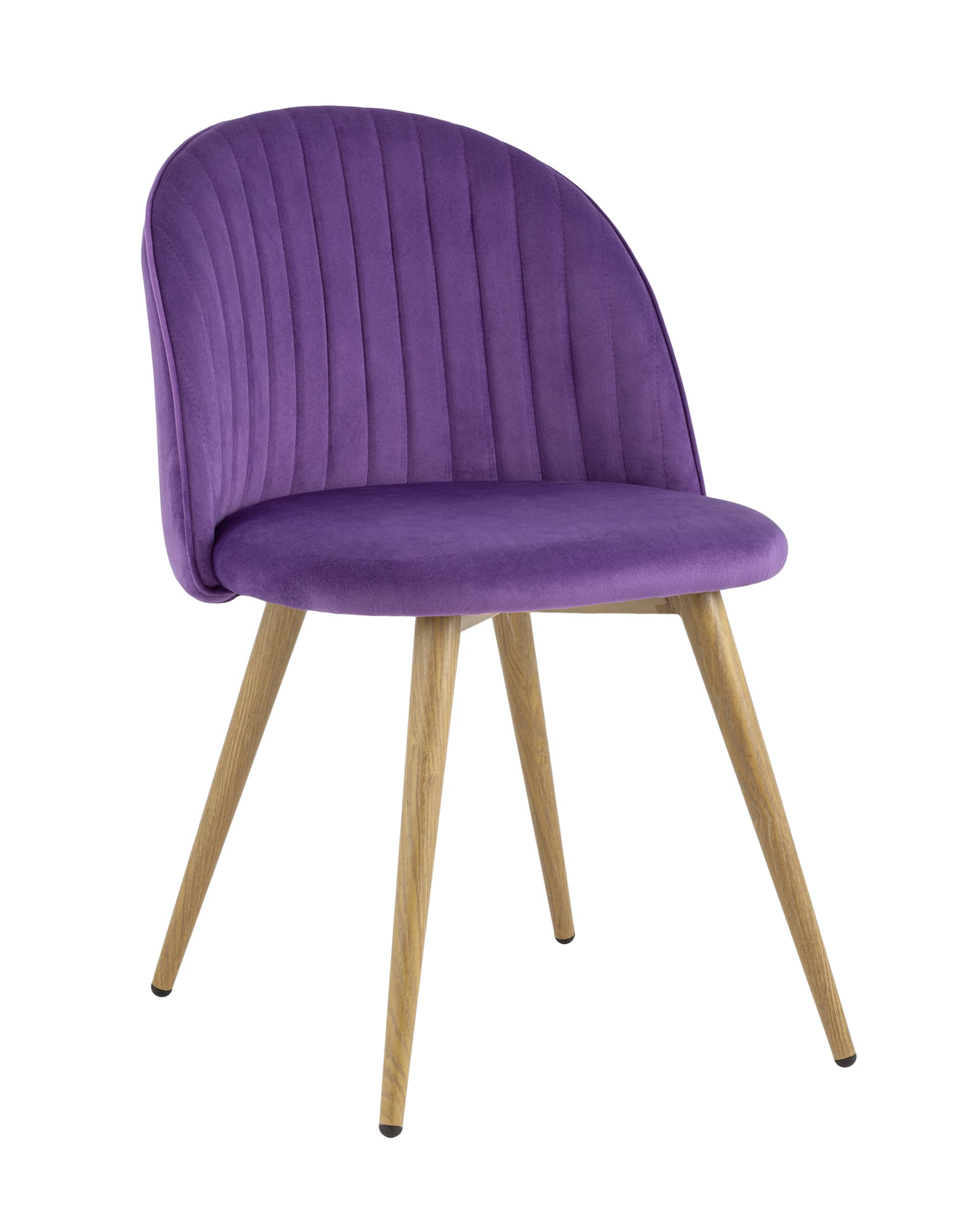 Стул Лион Страйпс лиловый обивка из велюра спинка с вертикальной прострочкой металлический каркас с принтом под натуральное дерево