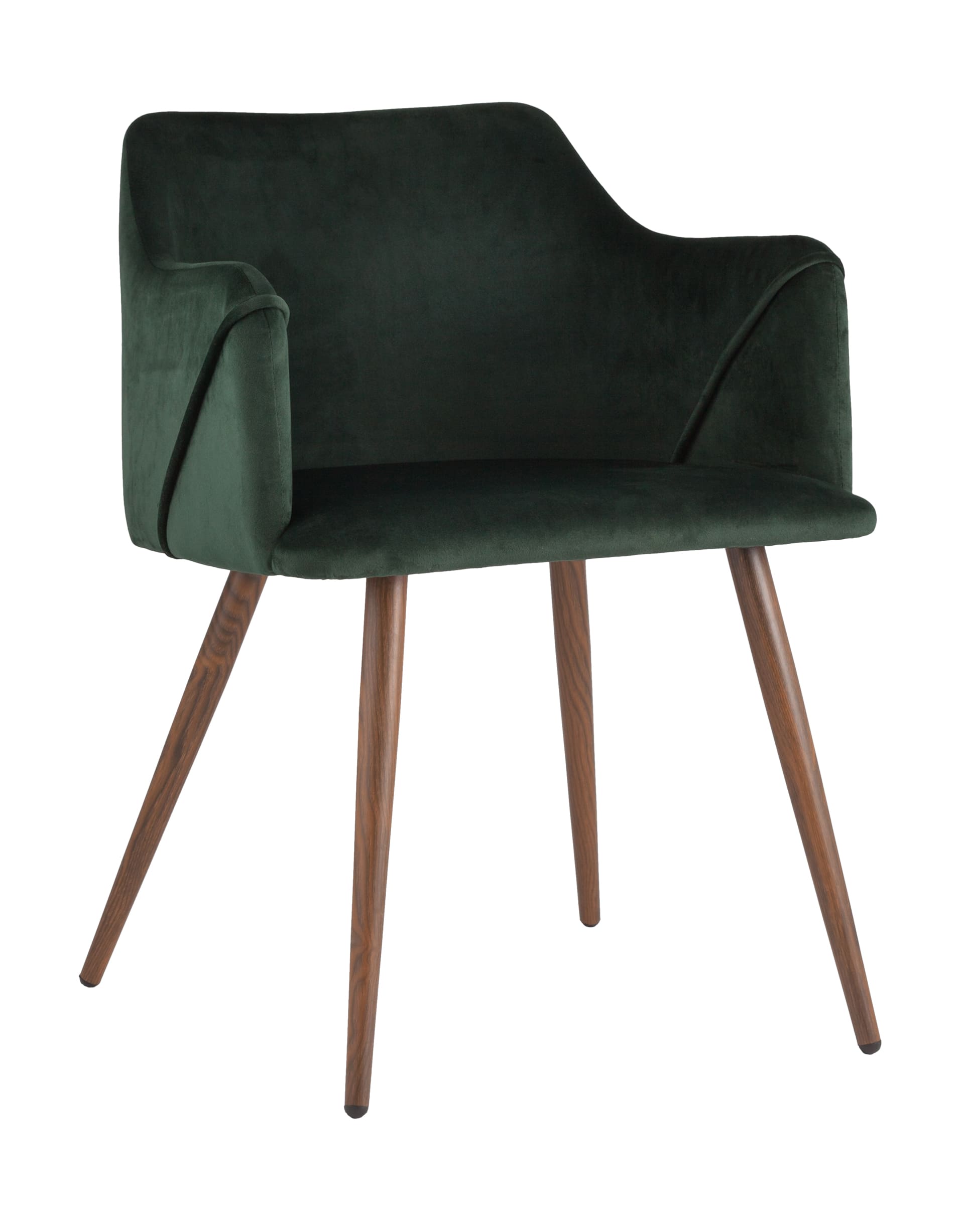 Стильный и мягкий кухонный стул имеет широкую эргономичную спинку и удобные подлокотники. Обивкой послужила высококачественная плотная ткань. Ножки металлические с принтом под дерево.